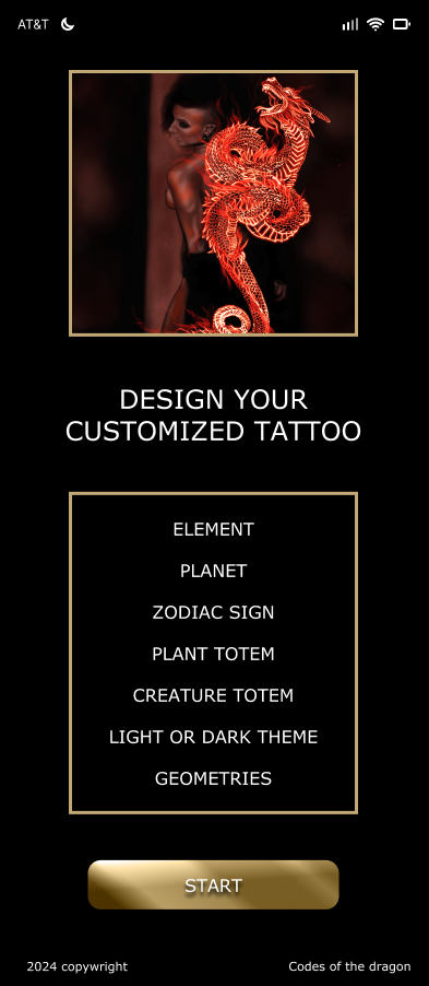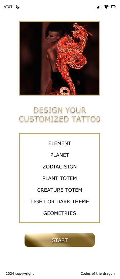 From selecting elements, planets, and zodiac signs to exploring light/dark themes and geometric patterns, this app offers a comprehensive framework for clients to co-create tattoo designs reflective of their inner journey and core themes, guided by their chosen symbols and themes.